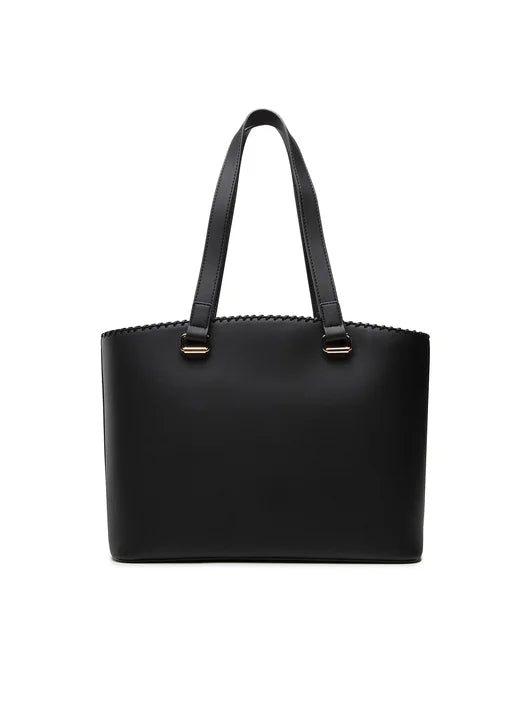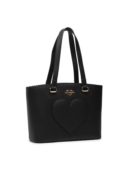 أنيق وأنيق حقيبة يد على شكل قلب أسود من لوف موسكينو، مصمم بلمسة نهائية ناعمة من الجلد الصناعي وتفاصيل قلب مخيطة بشكل جريء في المقدمة. تتميز هذه الحقيبة بأجزاء معدنية ذات شعار ذهبي اللون، ومقابض علوية مزدوجة، ومساحة داخلية واسعة، وتمزج بين العملية وسحر Love Moschino المميز. مثالي للعمل أو الارتداء اليومي أو إطلالات نهاية الأسبوع الأنيقة.