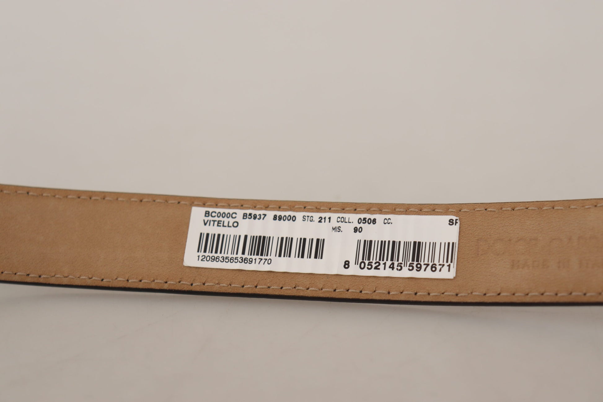 حزام دولتشي آند غابانا من جلد العجل الأسود مع مشبك معدني منقوش بشعار