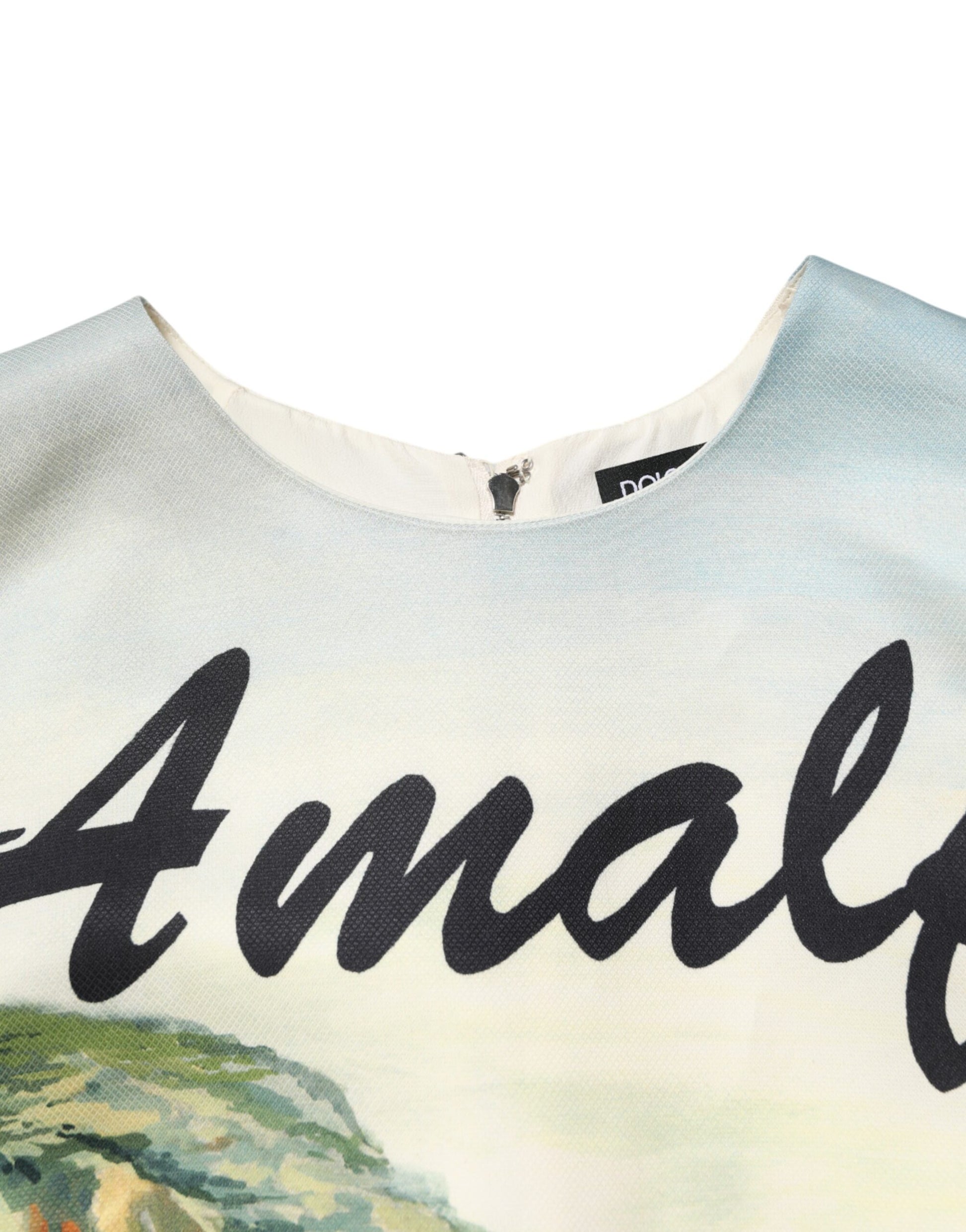 فستان قصير رائع جديد تمامًا، أصلي 100%، بدون أكمام، من دولتشي آند غابانا، بطباعة جرافيكية مع زخارف من الكريستال وكروشيه زهري.