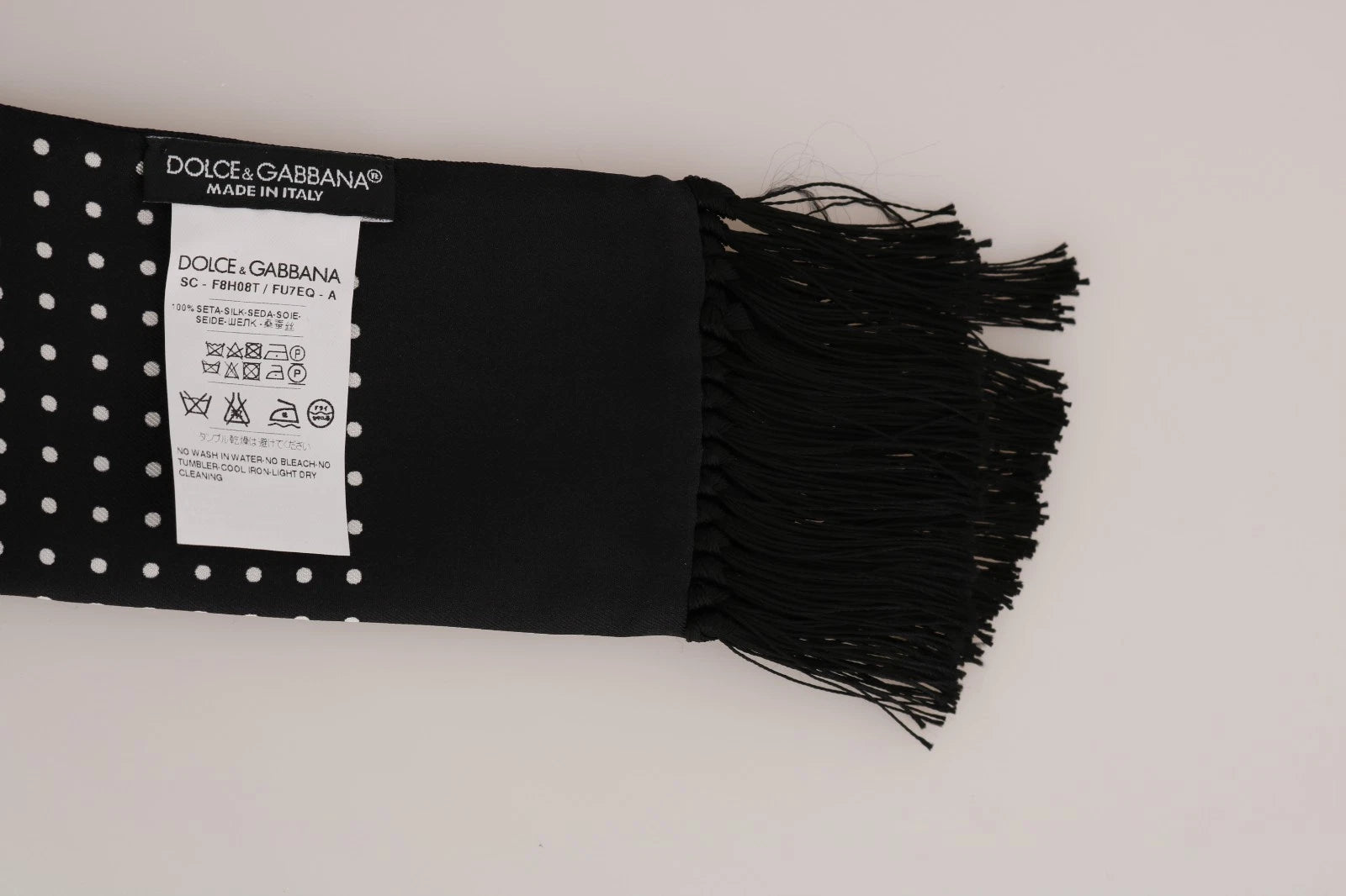 وشاح حريري أسود منقط باللون الأبيض مع زر تثبيت