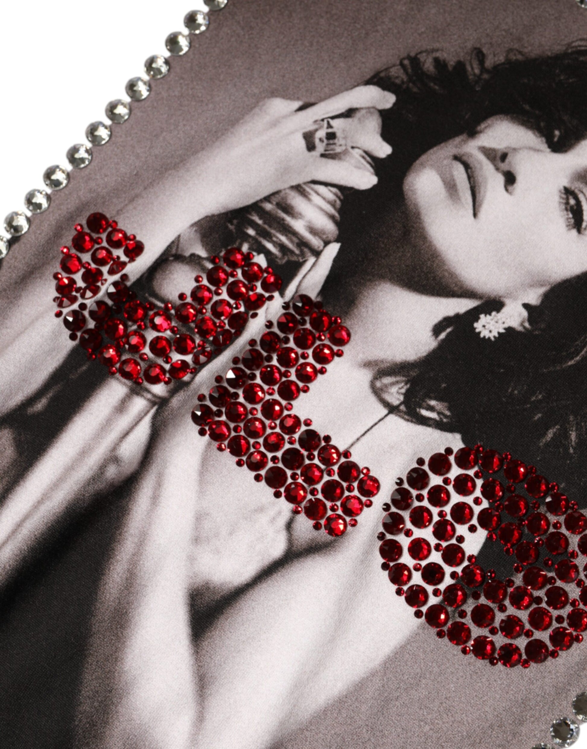 تي شيرت دولتشي آند غابانا أبيض مطبوع مزين بفتحة رقبة كريستالية