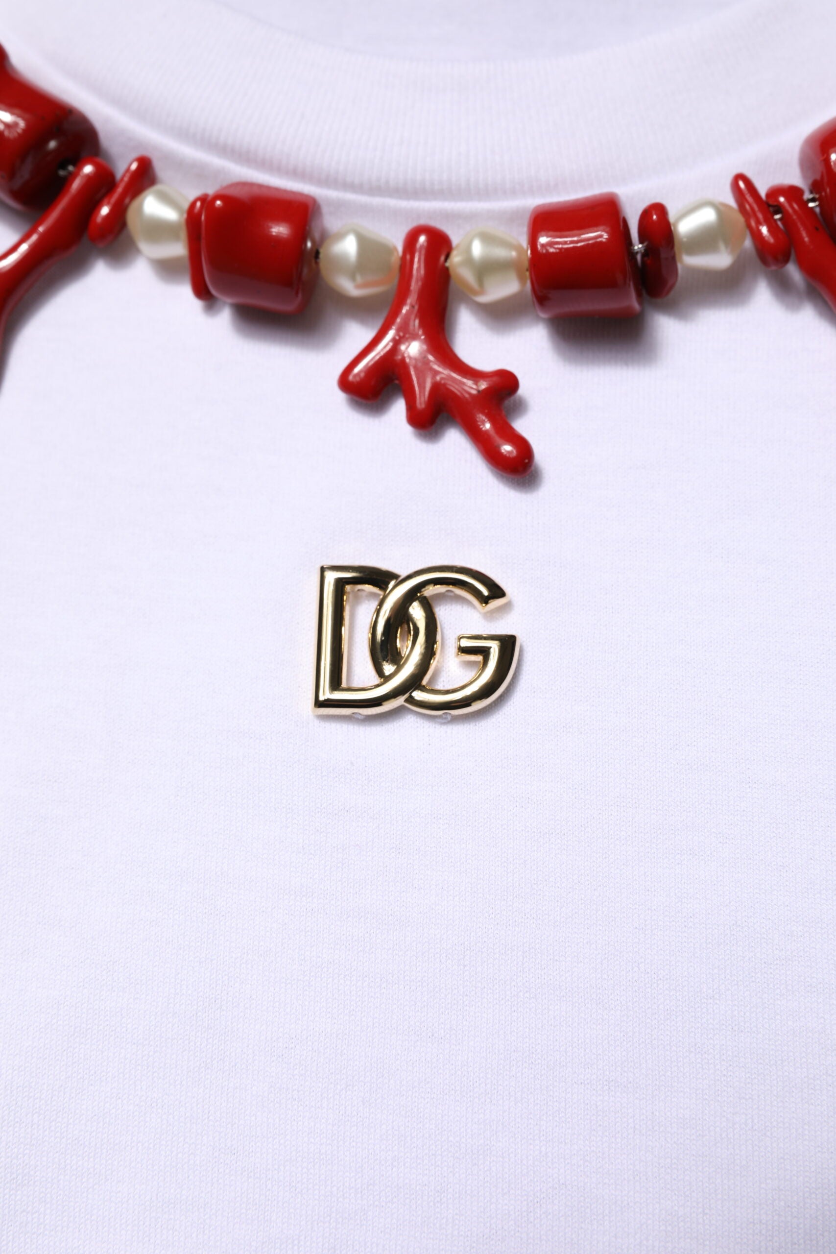تي شيرت رائع جديد تمامًا، مصنوع من القطن الأصلي 100% من دولتشي آند غابانا، برقبة دائرية مع زخارف.