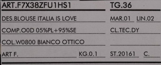 بلوزة رائعة جديدة تمامًا مع العلامات التجارية، مصنوعة من الحرير الأبيض الأصلي بنسبة 100% من DOLCE & GABBANA، ITALIA IS LOVE، ومزينة بالترتر .