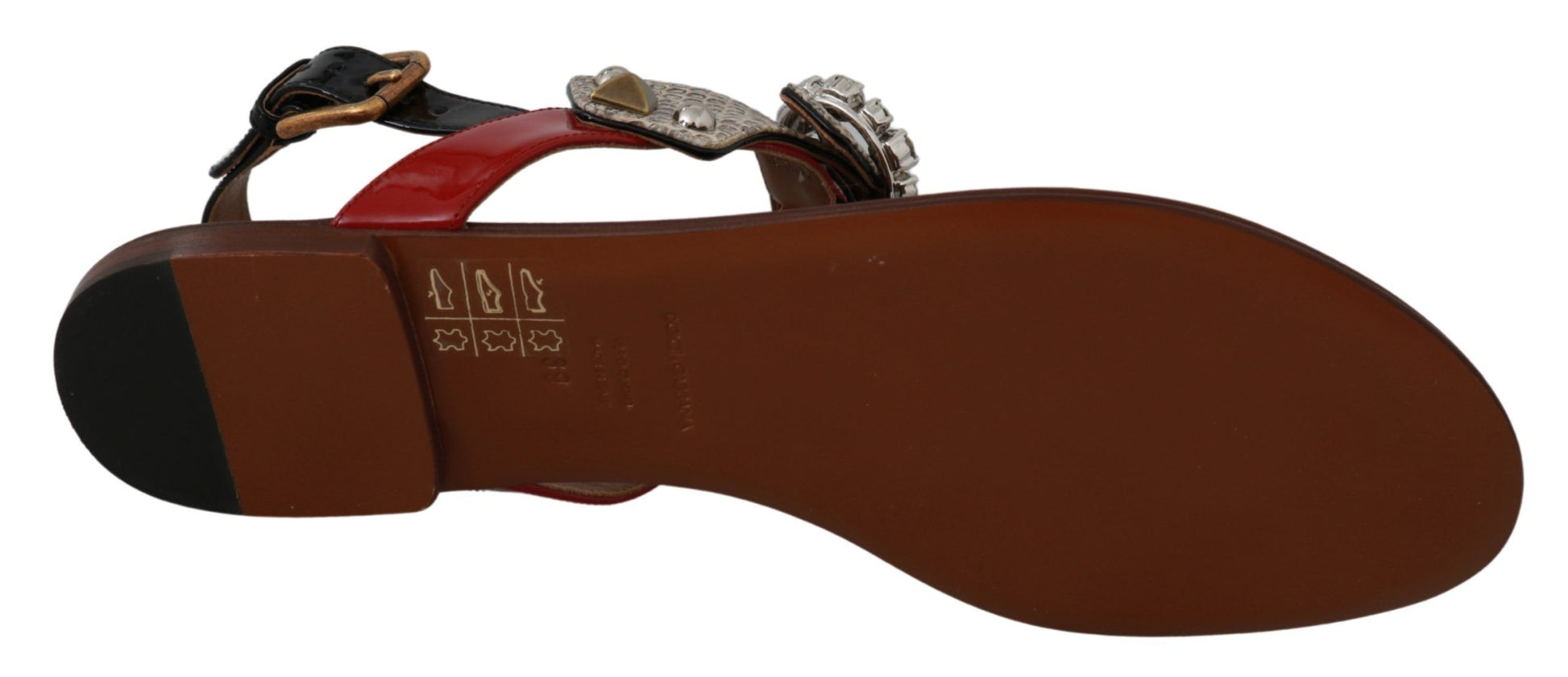 Dolce & Gabbana Leather Ayers Crystal Sandals Flip Flops Shoes
